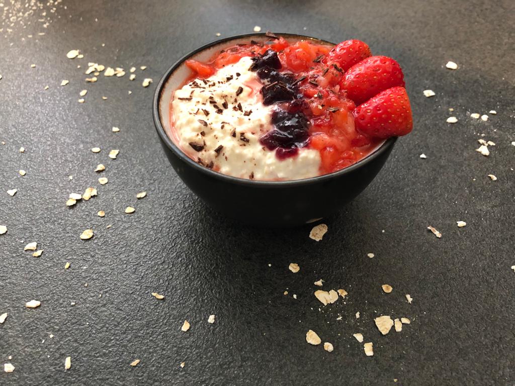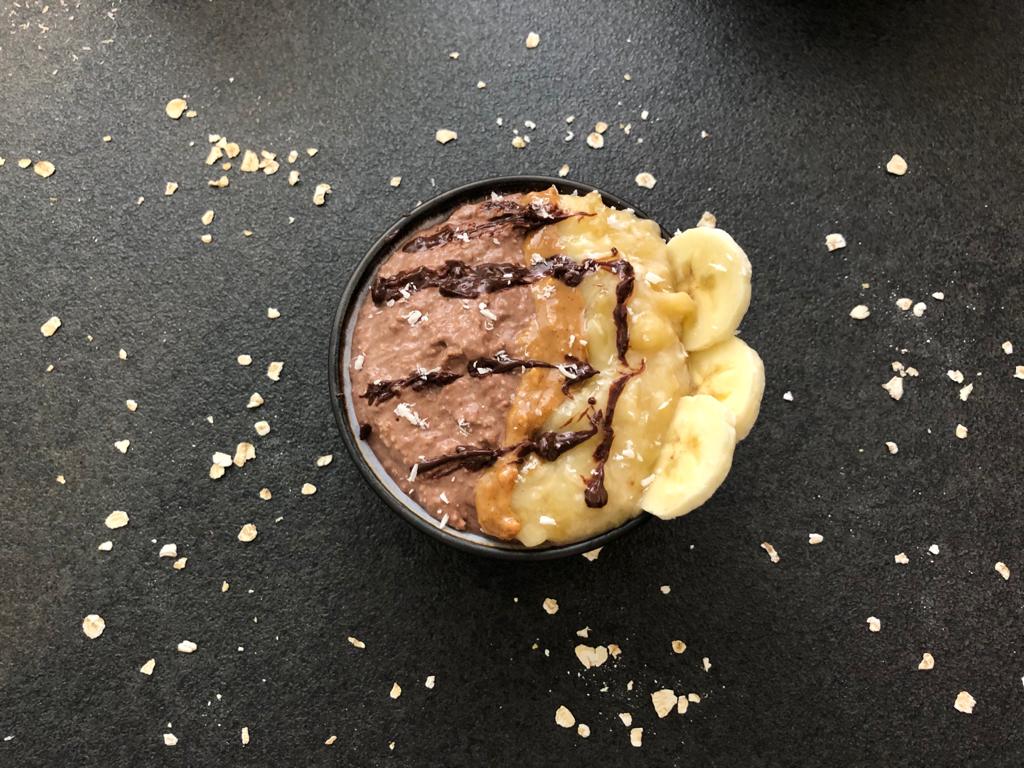 Je kan de havermoutpap eventueel kort opwarmen in de magnetron als je niet van koude pap houdt.