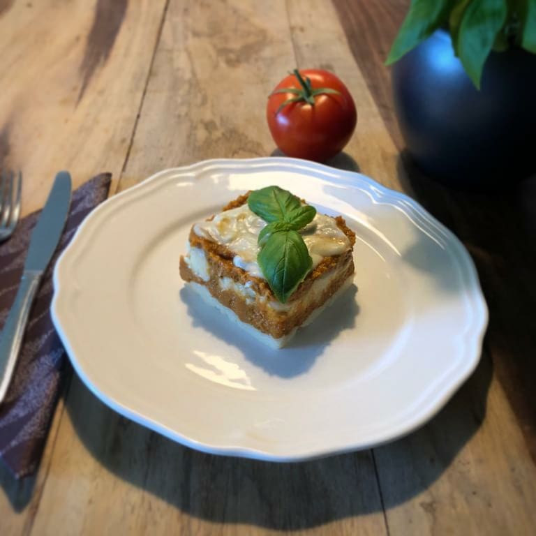 7. Zet de lasagne nog even in de voorverwarmde oven voor een aantal minuten op 120 graden om het nog even op te warmen.