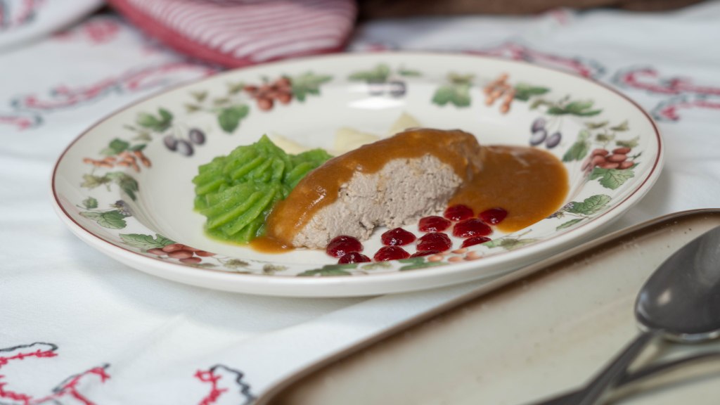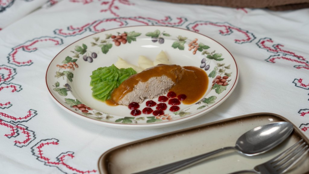 - Spuit of schep de varkenshaas op het bord en leg de andere componenten eromheen. Serveer als laatste de saus erbij.