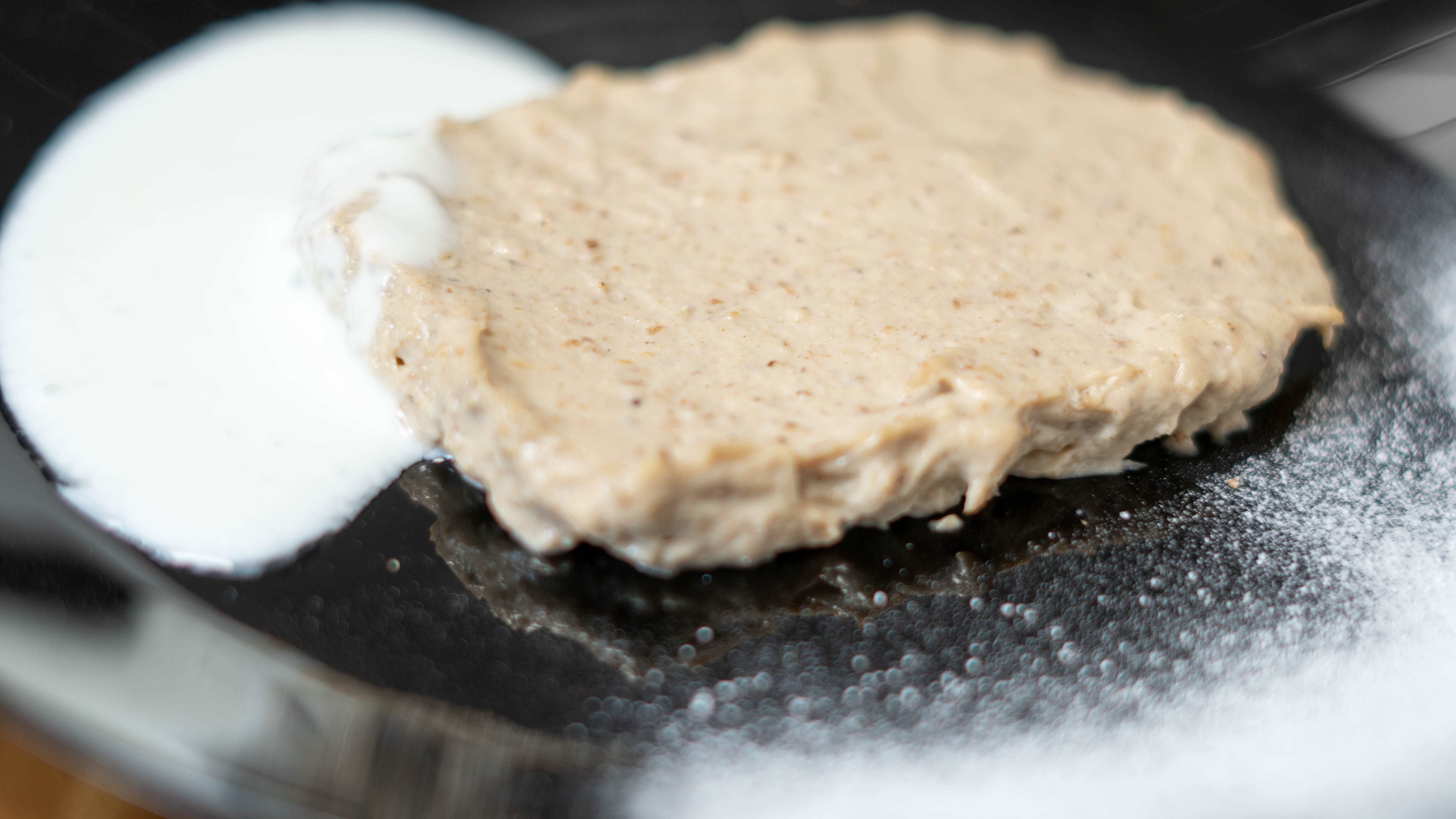 - Pel de bananen en doe ze samen met de havermelk, het vanille-extract, de maïzena en het zout in de blender. Mix alles tot een glad beslag.