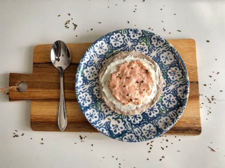 Een klassiek hartig hapje: een wrap met gerookte zalm. Deze versie is helemaal glad gemalen…